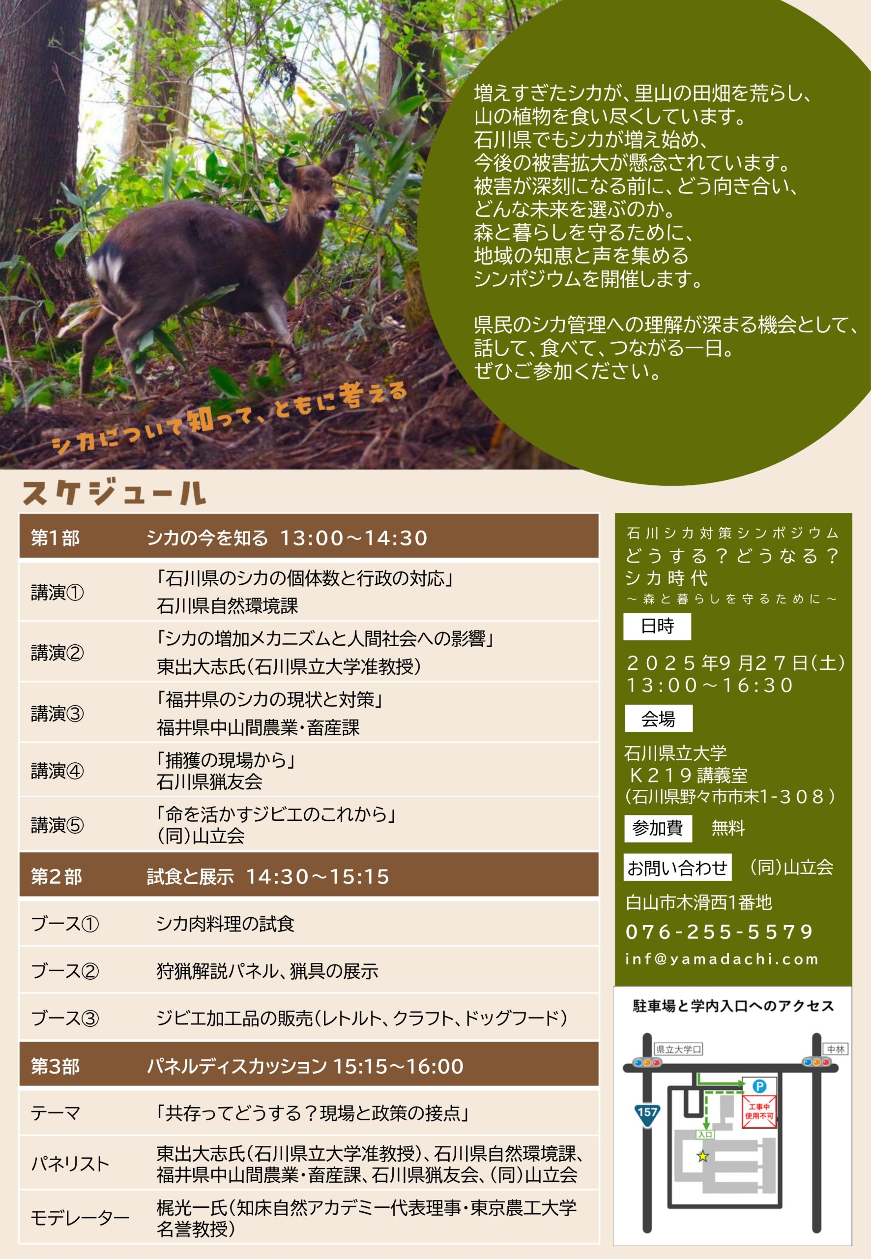 9/27(土)石川シカ対策シンポジウム開催決定!「どうする?どうなる?シカ時代~森と暮らしを守るために~」